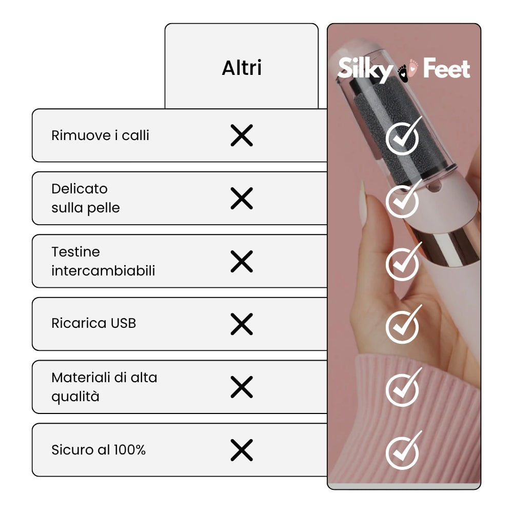 Basta a metodi tradizionali dolorosi o inefficaci: con il nostro strumento potrai ritrovare piedi morbidi e senza fastidi, pronti a camminare leggeri e senza dolore ogni giorno.